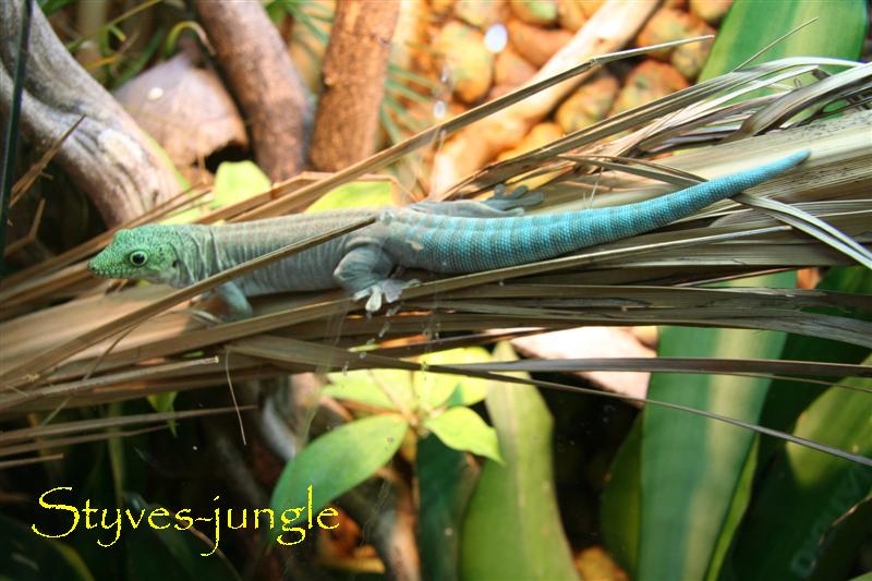 Die Tiere können sich in ihrer vollen Farbenpracht oder in dezentem Alltagsgrau presentieren, je nach Laune, Temperatur, und Lichtintensität. Jedes Tier besitzt sein individuelles Flecken- und Pünktchen-Muster. Das Spektrum reicht von sehr intensiver Zeichnung, bis hin zum Fehlen jeglicher Musterung. Was jedoch alle Individuen aufweisen, ist die typische Farbgebung, die mit Pastellgrün vom Kopf ausgehend beginnt, ab der Nackenregion hin zum Graublau, bzw. Graubraun über den gesamten Rumpf wechselt, und ab der Schwanzwurzel bis zur Schwanzspitze Türkisblau wird.