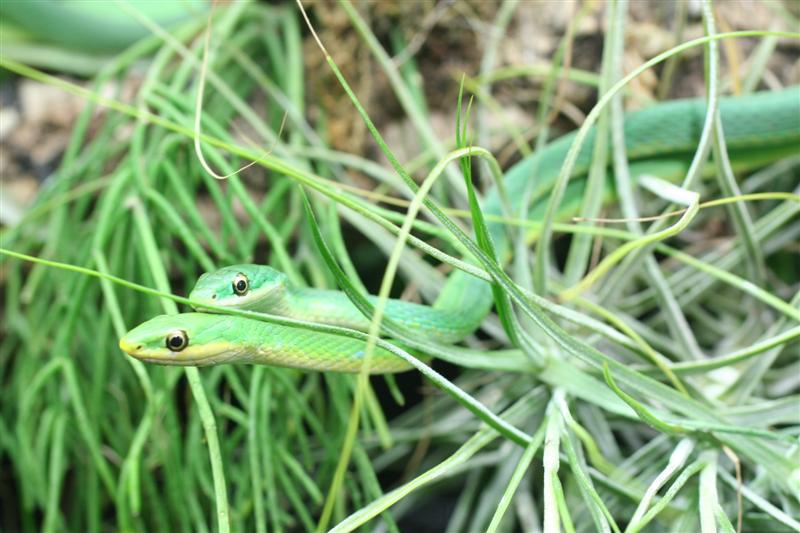 Beschreibung: schlanke Schlange, grasgrüne Farbe, Beschuppung gekielt, daher der Name rauhe Grasnatter. Es handelt sich um reine Insektenfresser die ihr Futter aktiv jagen und bei Störung recht schreckhaft reagieren können, sie sind sehr schnell.